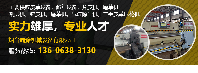煙臺鼎豫機(jī)械設(shè)備有限公司位于山東省煙臺市芝罘區(qū)楚玉路238號泰和工業(yè)園,我公司主要經(jīng)營皮革機(jī)械設(shè)備,超纖設(shè)備及配件的生產(chǎn),銷售。我們有好的產(chǎn)品和專業(yè)的銷售和技術(shù)團(tuán)隊,主要供應(yīng)皮革設(shè)備,超纖設(shè)備,片皮機(jī),磨革機(jī),剖層機(jī),鏟皮機(jī),磨革機(jī),氣流除塵機(jī),二手皮革壓花機(jī)。我們具有專業(yè)維修國內(nèi)外各種型號精密片皮機(jī)的技術(shù)和能力,承攬大中小維修機(jī)械的業(yè)務(wù)。定制各種型號帶刀、砂輪等。
